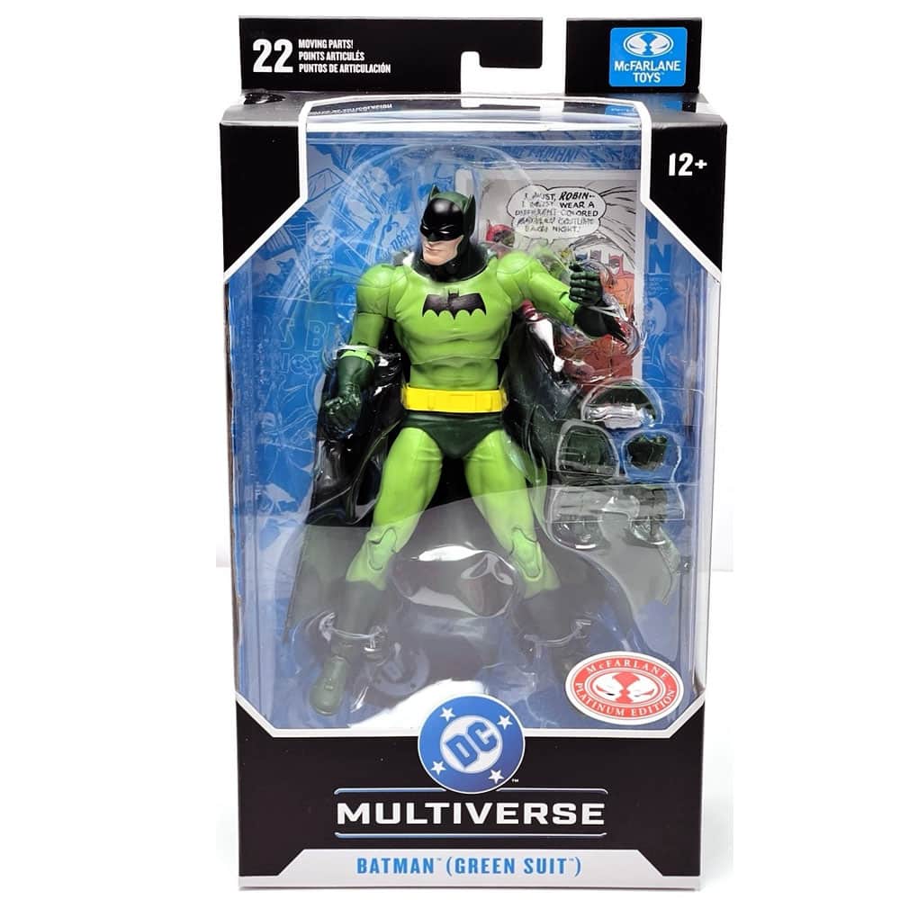 Бэтмен (Зеленый костюм) — версия Platinum/Chase из линейки DC Multiverse от McFarlane Toys. Высота около 18 см, материалы — ПВХ и АБС-пластик. Конструкция с 22 точками артикуляции обеспечивает полную свободу для позирования и игр.